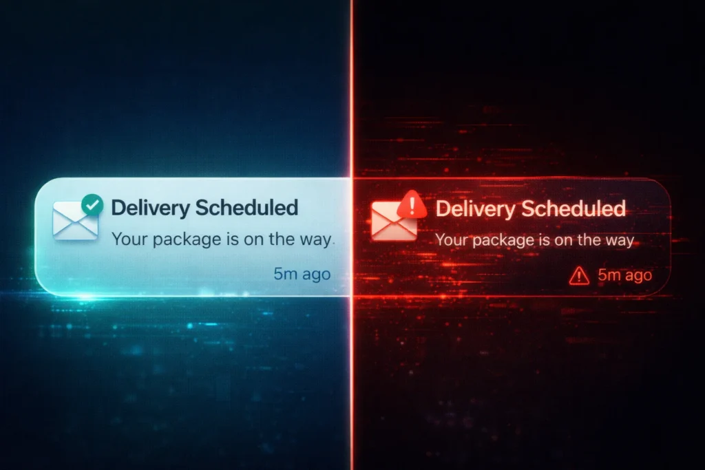 | Phishing / ID Link | Text asking you to “confirm” your Apple/Google ID via a link | Hover over the link first — then go directly to the official site instead of clicking |